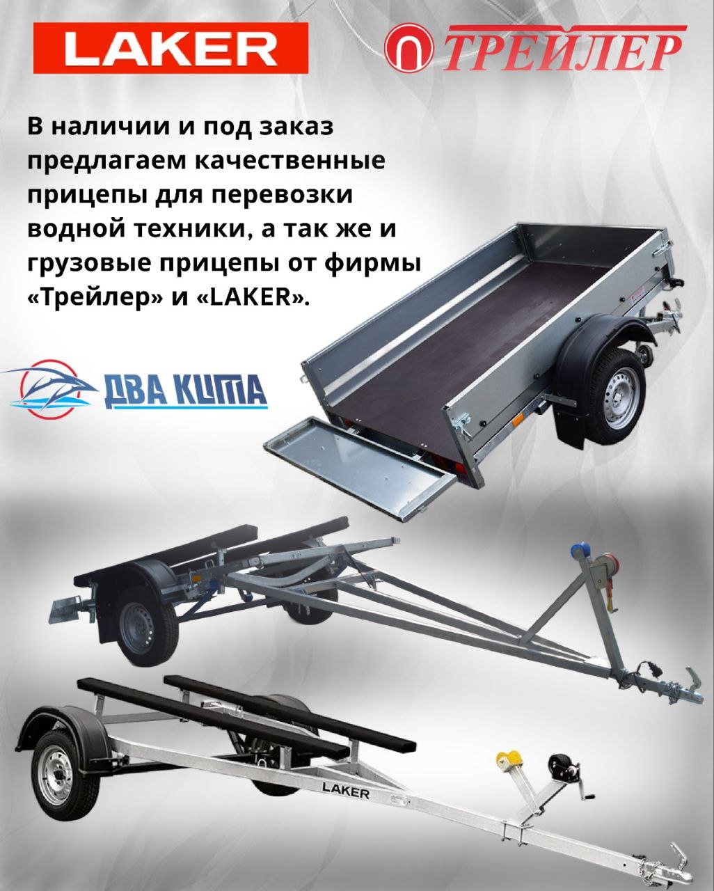 В наличии и под заказ качественные прицепы для перевозки водной техники
